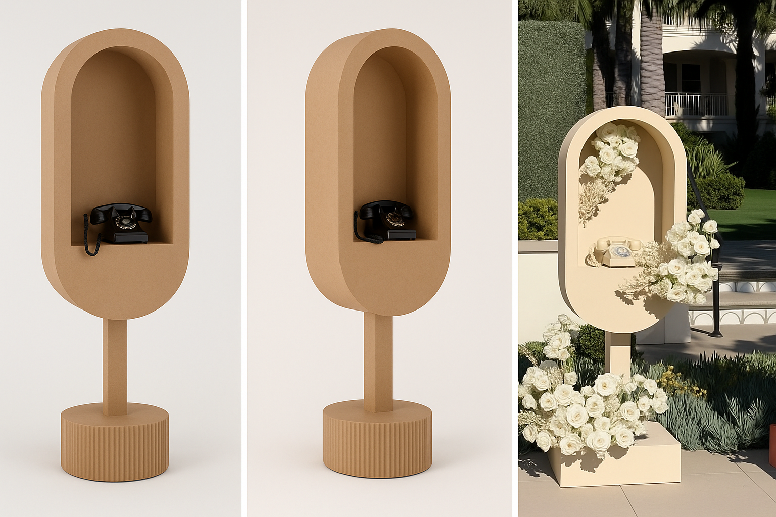 Stijlvolle en functionele telefooncel ontworpen met het oog op de evenementenbranche. Speciaal ontworpen voor de presentatie van de Wensentelefoon – ideaal voor bruiloften, jubilea, vrijgezellenfeesten en andere bijzondere gelegenheden.